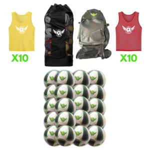 20 x Ljugador Ark footballs, 1x Backpack with football compartment, 1x Carry bag, 10x red bibs & 10x yellow bibs.